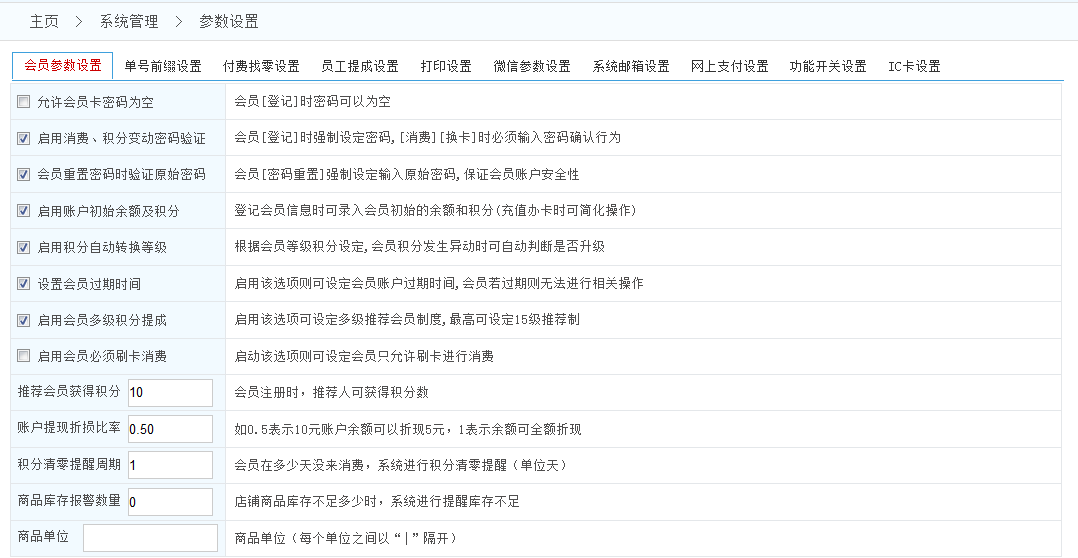 五通一卡通云會(huì)員管理系統(tǒng)系統(tǒng)參數(shù)設(shè)置