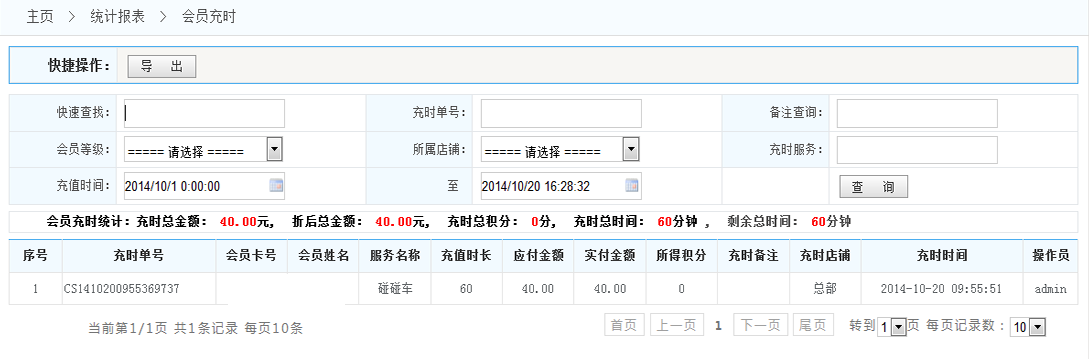 充次統(tǒng)計:查看會員充時記錄
