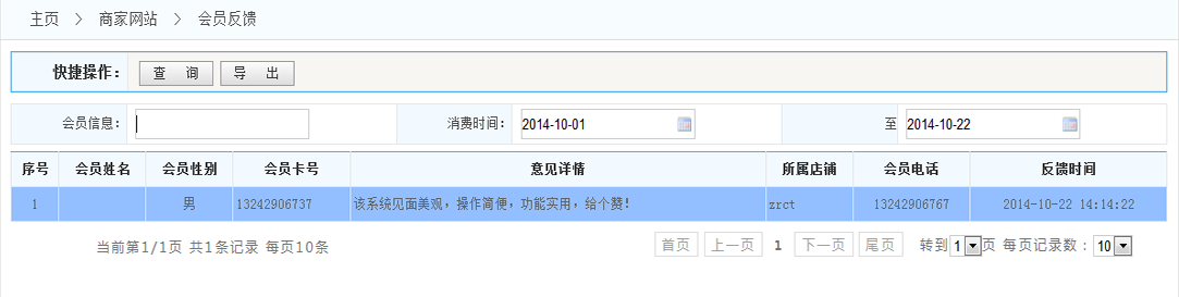 2.導(dǎo)出:可以將按條件查詢出來(lái)的會(huì)員反饋列表 以Excel形式導(dǎo)出